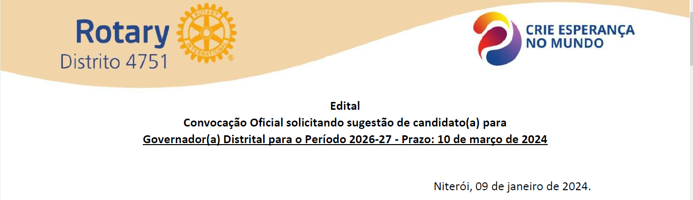 Desta forma, convido seu clube, se assim o desejar, a sugerir o nome de um Companheiro ou Companheira para ocupar o cargo de Governador no período 2026-2027.